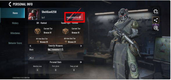استخدم حسابك لتسجيل الدخول إلى اللعبة. اضغط على "الصورة الرمزية" (Avatar) في الزاوية العلوية اليسرى. سيتم عرض معرف المستخدم الخاص بلعبة Blood Strike.
